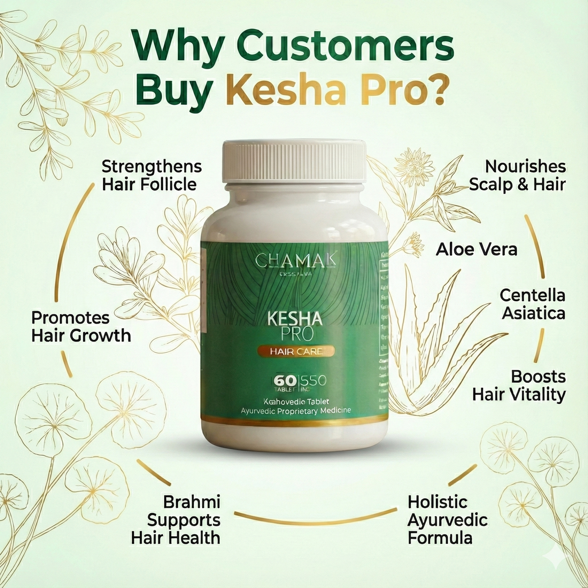 Chamak's Kesha Pro Ayurvedic Capsules 60 Caps – Herbal Hair Fall Control & Hair Growth Formula with Bhringraj, Amla & Brahmi – Natural DHT Blocker for Men & Women