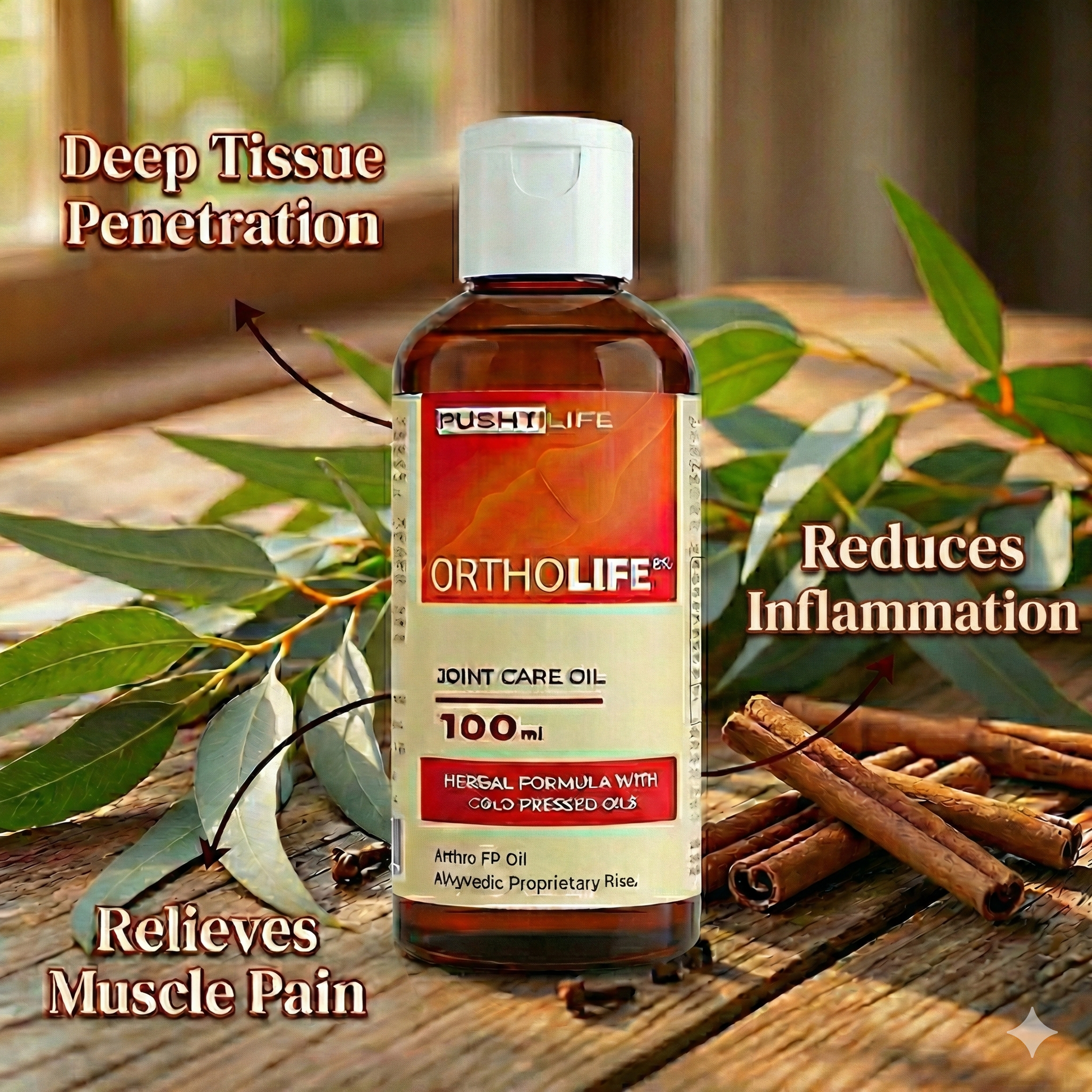 OrthoLife Oil is a premium Ayurvedic blend of 10+ essential herbs and cold-pressed oils designed for deep tissue penetration and rapid pain relief.